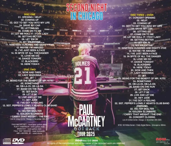 PAUL McCARTNEY / GOT BACK TOUR 2025: SECOND NIGHT IN CHICAGO (2CDR+1DVDR)